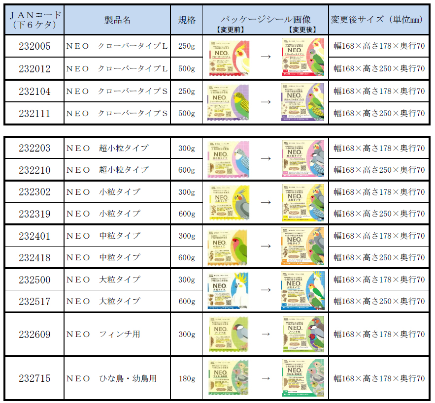 この度、下記の通りNEOシリーズ製品のパッケージ変更をさせていただきます。