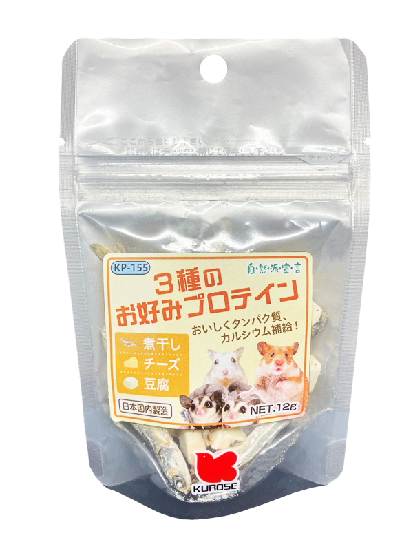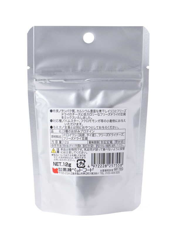 タンパク質、カルシウム豊富な煮干しイリコとフリーズドライのチーズに低カロリーなフリーズドライの豆腐をミックスした健康的なおやつです。